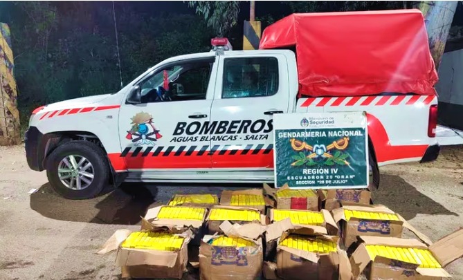 Cerca de las 1:30 de la madrugada del viernes, Gendarmería detuvo la marcha de un camión de Bomberos Voluntarios de Aguas Blancas, que se dirigía desde esa ciudad a San Ramón de la Nueva Orán, en Salta, con más de 300 kilos de cocaína en un camión.